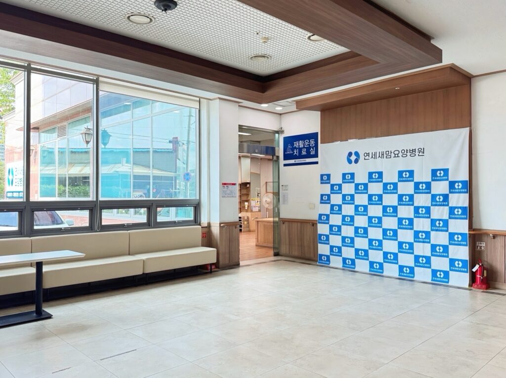 yonsei saemom 병원시설 및 층별안내 연세새맘요양병원 로비 병실안내 2인실 5인실 6인실 치료실 연세새맘요양병원 층별안내 <6층>물리치료실, 격리재활치료실, 601-603호, 605-607호<5층>501-503호, 505호-511호 간호사실, 당직실<3층>301-303호, 305호-310호 간호사실, 약국<2층>201-203호, 205-210호 간호사실, 병원장실, 야외테라스<1층>진료실, 간호부장실, 재활운동치료실 원무부, 의무기록실, 영상의학과, 영양실 직원식당, 탈의실